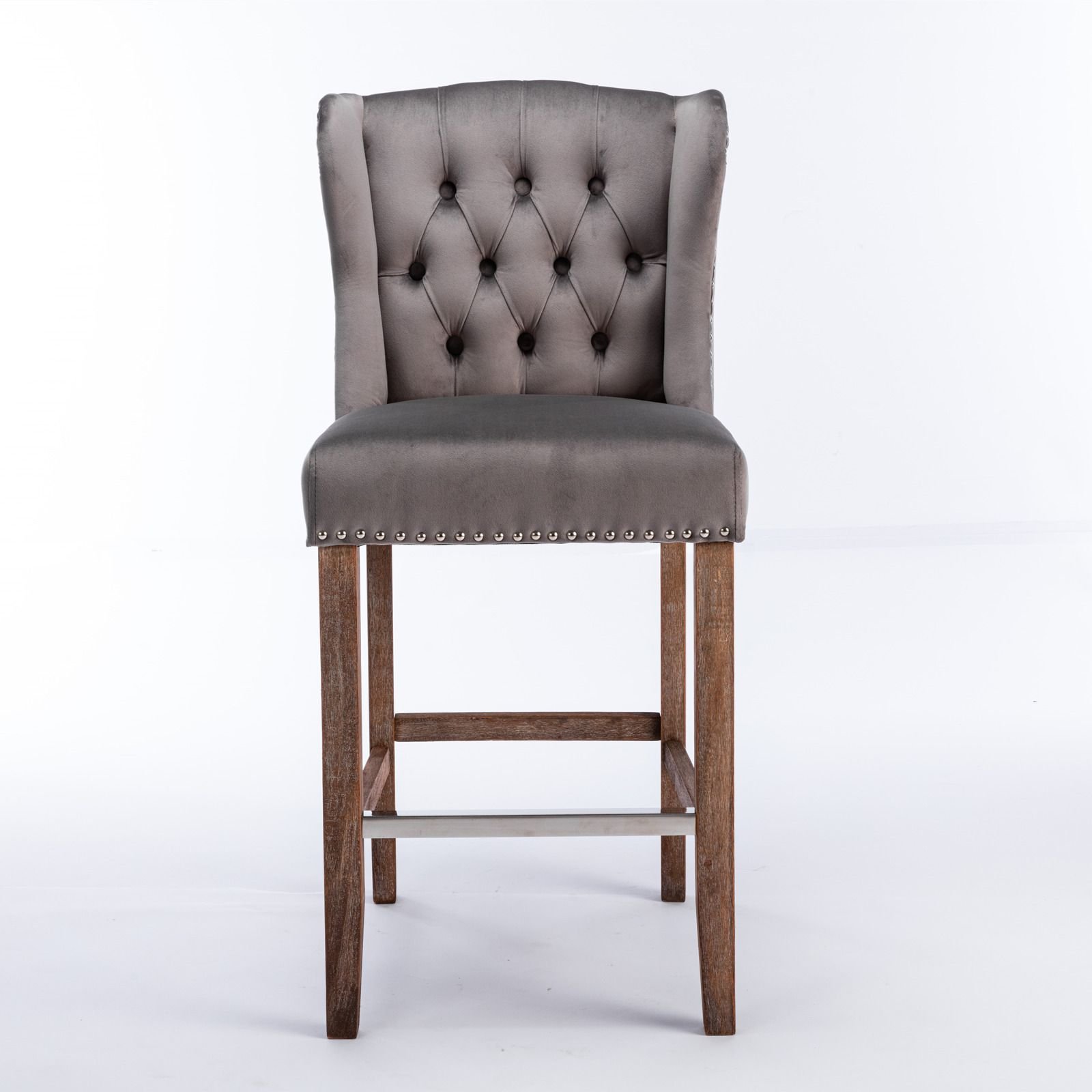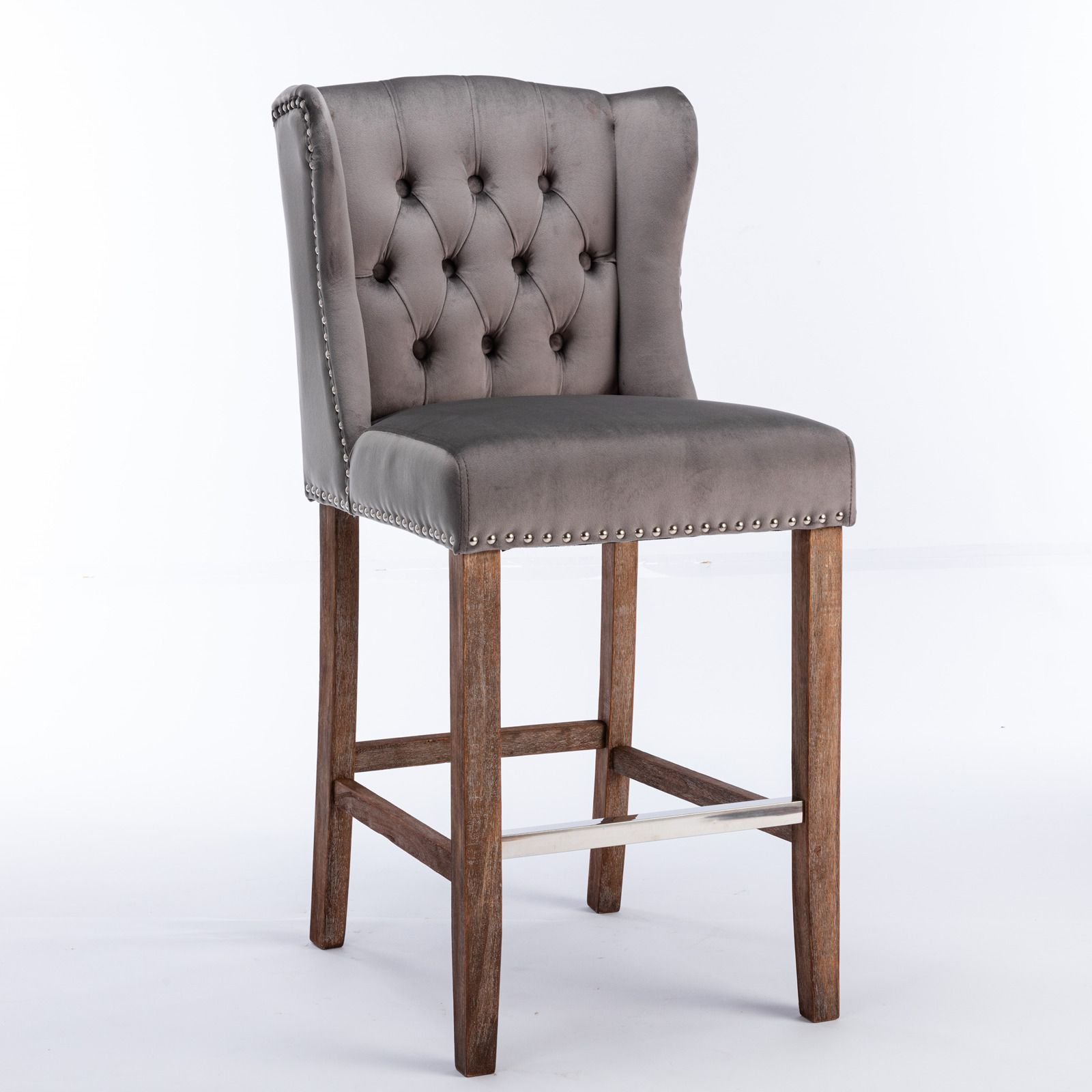 Home > A&A Furniture,Counter Height Bar Stools, Upholstered 27" Seat Height Barstools, Wingback Breakfast Chairs with Nailhead-Trim & Tufted Back, Wood Legs