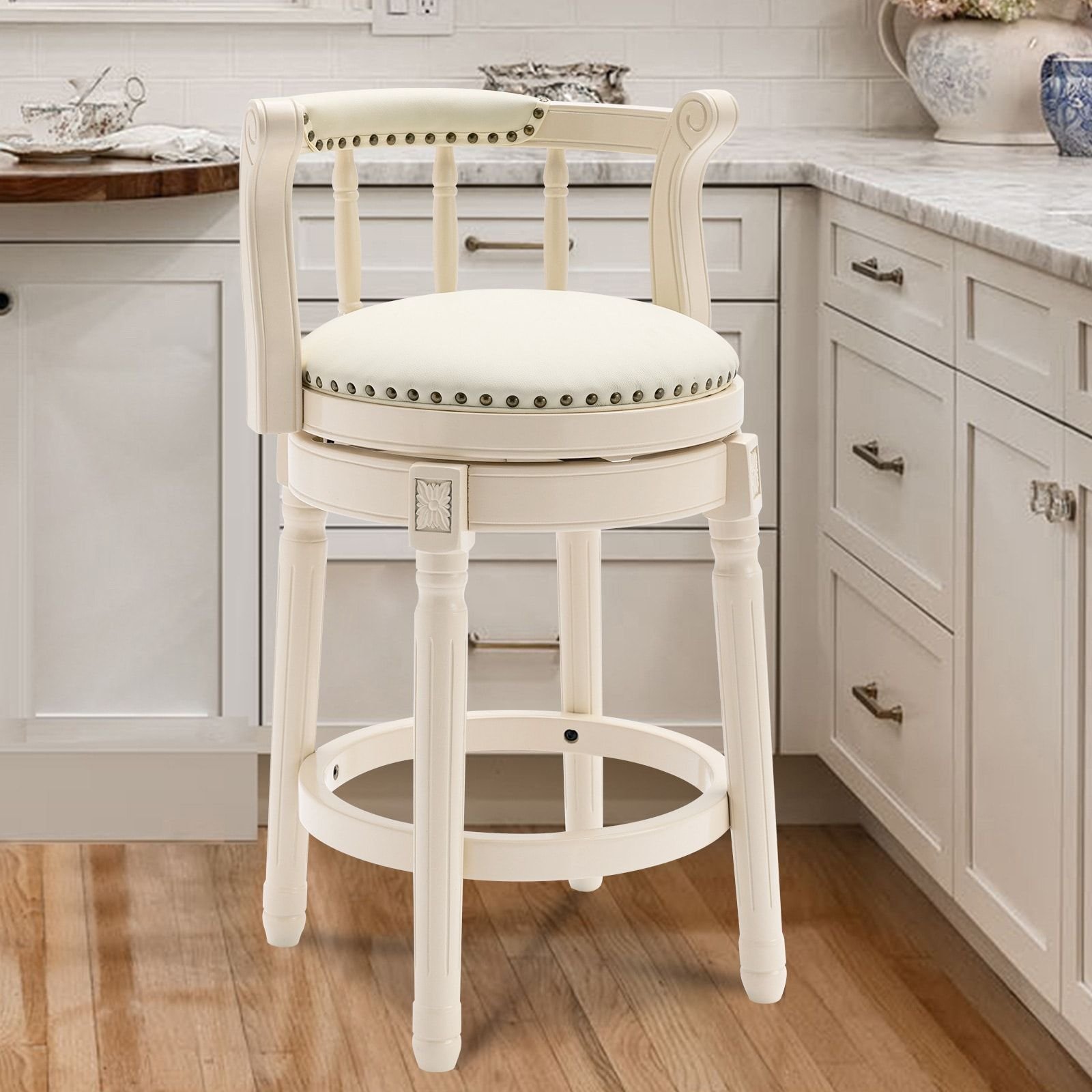 Home > Bar Stools Seat Height 26'' Leather Wooden Bar Stools 360 Degrees Swivel Barstools Chair for Home Kitchen 1pc