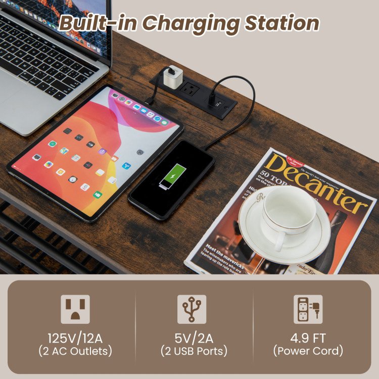 -Built-in charging station with 2 AC outlets and 2 USB ports
