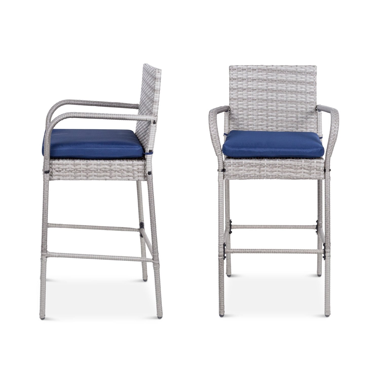 Set of 2 Grey Indoor/Outdoor Wicker Bar Stools w/ 2 Blue Cushions Set of 2 Grey Indoor/Outdoor Wicker Bar Stools w/ 2 Blue Cushions Set of 2 Grey Indoor/Outdoor Wicker Bar Stools w/ 2 Blue Cushions Set of 2 Grey Indoor/Outdoor Wicker Bar Stools w/ 2 Blue Cushions Set of 2 Grey Indoor/Outdoor Wicker Bar Stools w/ 2 Blue Cushions