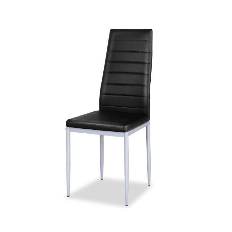 • Set of 4 Modern High Back Black PVC Leather Dining Chairs with Metal Legs