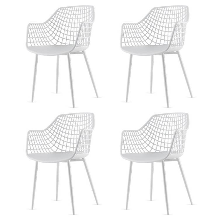 Set of 4 Modern Mid-Century White Mesh Dining Chair with Ergonomic Backrest
